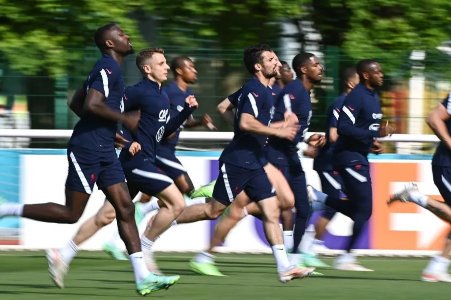 Si les fractionnés sont aujourd’hui pointés du doigt comme les responsables de tous les maux français, ce serait vite oublier que c’est un des rares exercices dans lesquels Léo Dubois a le droit de montrer sa véritable valeur depuis le début de l’Euro. Alterner course à haute intensité, décélérer, puis repartir sur toute la longueur du terrain, le Lyonnais sait faire. Et quand d’autres se tiennent les hanches à la recherche d’air, lui est bien souvent celui qui mène le train. Sauf que le gamin de Segré n’est pas là pour préparer le 3000m steeple des JO de Tokyo, mais pour participer à une aventure collective bien plus grande : jouer un Euro avec l’équipe de France. Problème : pour le moment, c’est plus souvent des tribunes ou du banc — quand le staff décide de lui octroyer le luxe de participer à l’échauffement — que Léo Dubois traverse cette compétition.