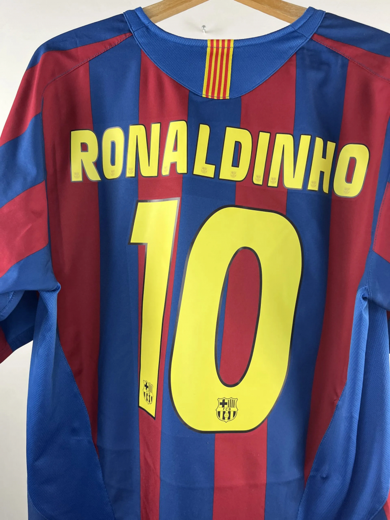 J’ai économisé l’argent d’anniversaires spécialement pour acheter ce maillot et à 16 ans, j’ai fait des recherches sur Internet, en tapant le truc tout bidon : Barça Ronaldinho et l’année 2005. Et je suis tombé sur une annonce en anglais sur eBay. Et c’est parti de là, ma première commande. Je l’ai payé une centaine d’euros. À cette époque-là, je ne me posais pas vraiment la question de savoir s’il était authentique ou pas, je voulais seulement le maillot.