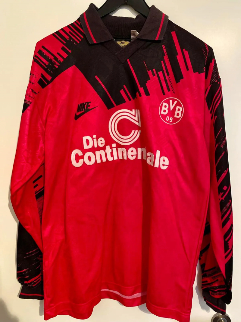 Je suis sur Vinted et je trouve un maillot qu’une grand-mère, qui vide ses placards, vend 15 euros. C’est un maillot de Dortmund, mais je ne l’ai jamais vu. Il est rose fluo…