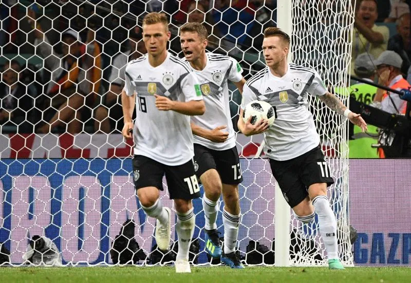Dos au mur, Joachim Löw avait décidé de frapper fort au coup d’envoi, en écartant Hummels, Khedira et surtout Özil – qui restait sur 26 titularisations de rang en compétition internationale, soit depuis la Coupe du monde 2010 – du onze de départ. À leurs places, Rüdiger, Rudy et Reus pour redynamiser une Mannschaft moribonde. Des choix d’abord payants, puisque sous l’impulsion de Rudy, l’Allemagne démarre le match tambour battant et s’installe dans le camp suédois. En alternant passes courtes et renversements de jeu, les champions du monde baladent les Suédois sans pour autant se montrer dangereux, malgré un Julian Draxler remuant, qui bute d’entrée sur Olsen.