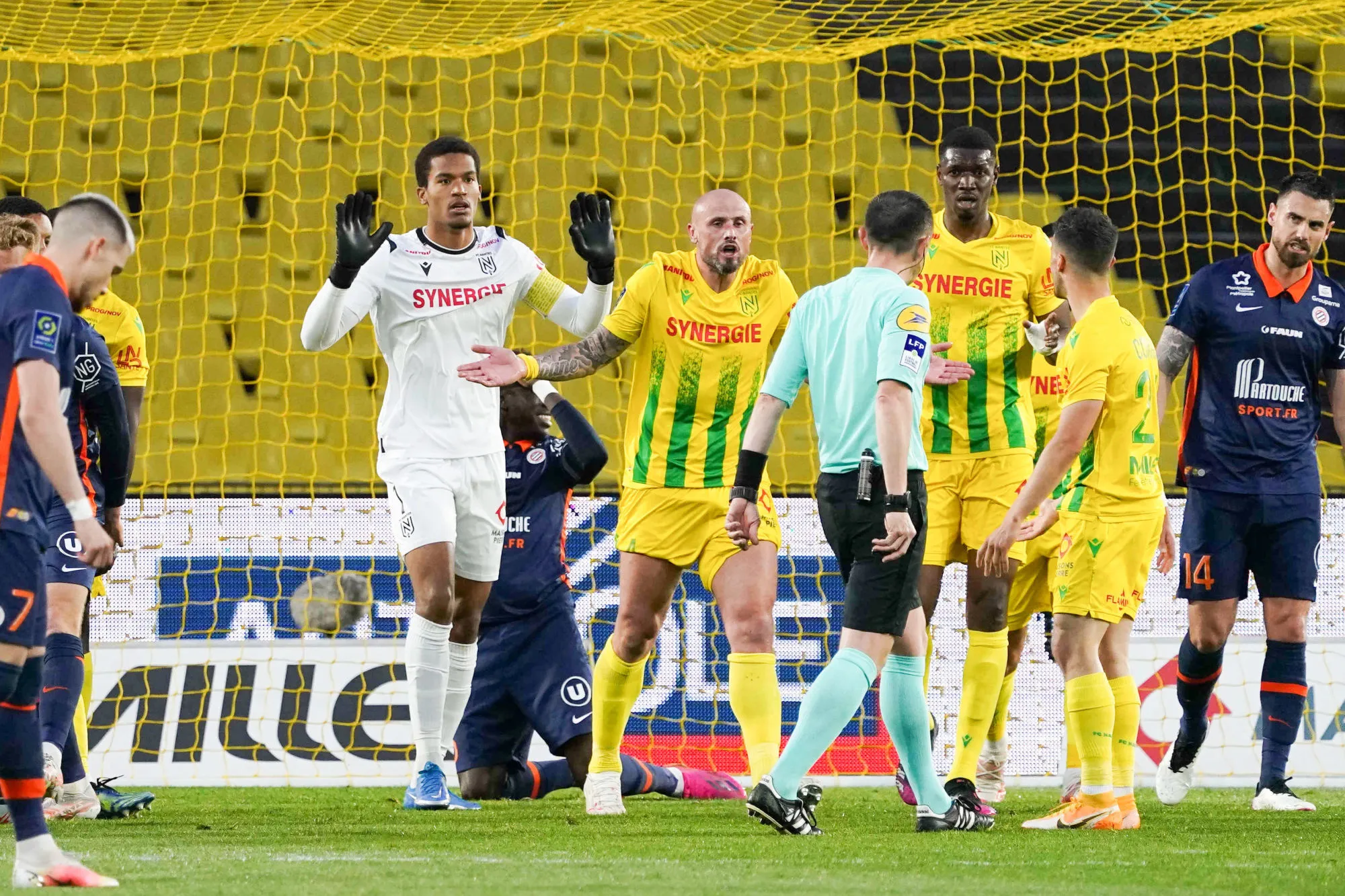 Buts : Kolo Muani (33e) pour les Canaris // Laborde (30e) & Delort (76e) pour le MHSC