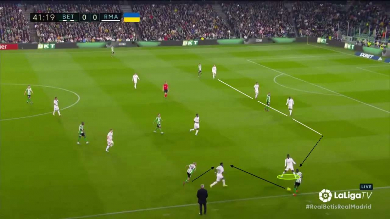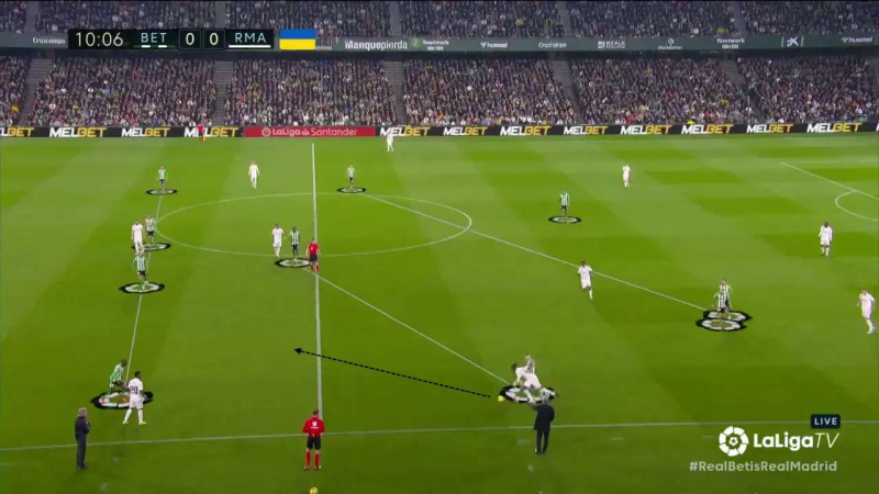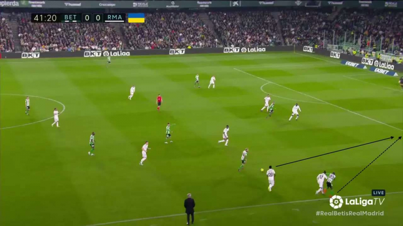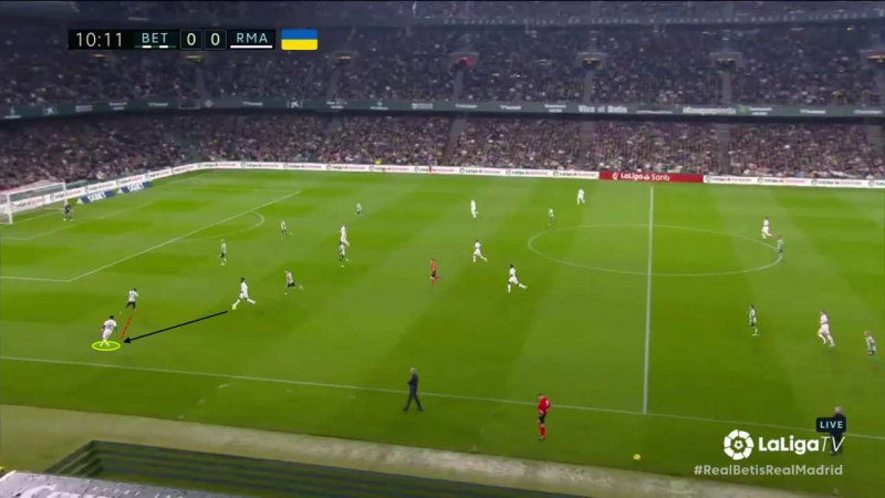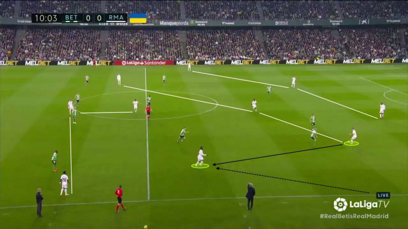 Au Real, le cadre est plus clair. La preuve en images face au Betis (0-0) le 5 mars dernier où il vient se rendre disponible à l’intérieur pour laisser Kroos décrocher dans sa zone favorite…