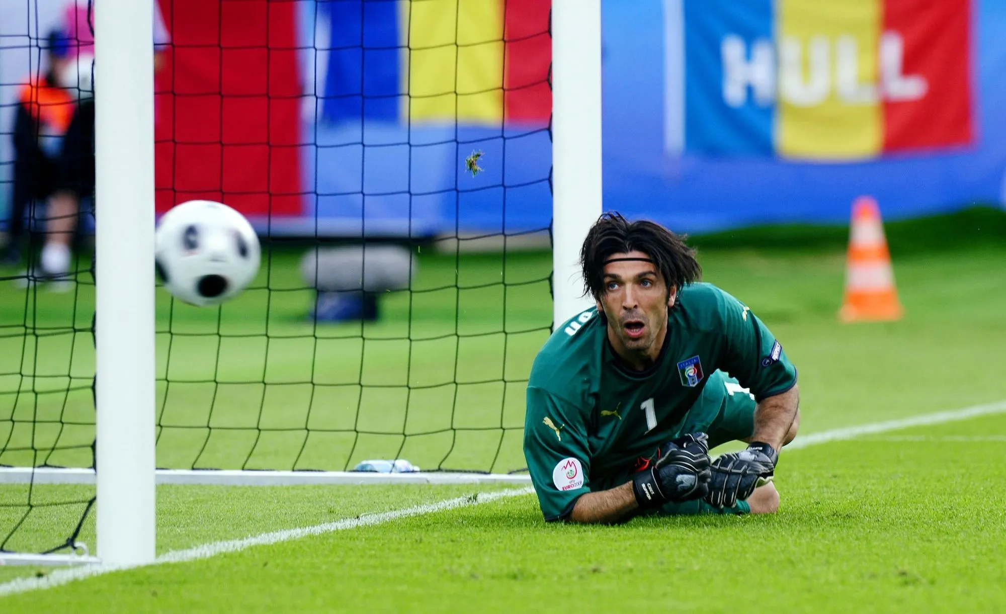 En un seul coup de patte, le protagoniste parvient ainsi à établir pas moins de quatre contacts entre le cuir et les montants. Tir croisé-poteau gauche-barre transversale-poteau droit-poteau gauche. Plus qu’un exploit, une véritable œuvre d’art.