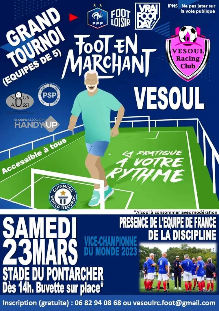 Car oui, le club de D3 du Vesoul RC est le vainqueur du 5e Grand Prix du Vrai Foot Day, notre journée d’hommage et de mise en avant du foot amateur. Et grâce à leur tournoi de walking foot de ce samedi 23 mars – ouvert à toutes et tous – qui donne le droit d’affronter l’équipe de France en finale, ils bénéficieront d’une médiatisation digne d’un match de C1 sur notre site.