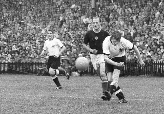 31. Le 6 octobre 1956, devant 120 000 personnes, Fritz Walter inscrit un but venu d’ailleurs lors d’un match amical à Leipzig face au SC Wismut Karl-Marx-Stadt (aujourd’hui Erzgebirge Aue). Un coup du scorpion sur un centre de son frère Ottmar qui sera considéré comme le « but du siècle » et dont il n’existe malheureusement qu’un cliché.