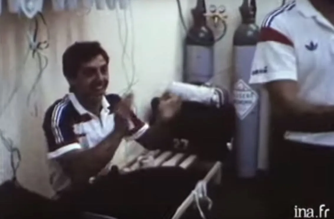 En 1986, ça se passe comment ? AD : Platini était blessé à la cheville, Bats n’était pas bien non plus, après une grande année pourtant. Une fois au Mexique, l’altitude a aussi joué pour Giresse, à partir d’un certain moment, il le ressentait intimement. BB : On avait des bouteilles d’oxygène dans les vestiaires, aux entraînements et aux matchs. Quand je suis arrivé à Mexico la première fois, avec la pollution et la chaleur, j’ai paniqué, j’ai fait une forme de spasmophilie. Au moindre effort, on était cramés. Ce n’était pas une situation pour jouer au foot. J’imagine déjà la Coupe du monde au Qatar…AD : Moi, j’étais là pour faire un film, je connaissais l’importance des images et j’étais le seul à être avec eux.