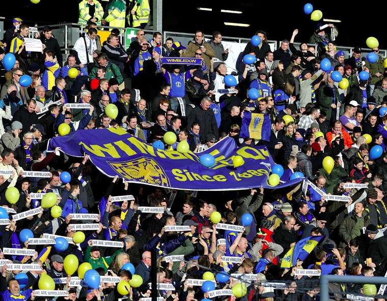 En plus d'être un club né d'une action de ses supporters, l'AFC Wimbledon a la particularité d'être sponsorisé par un label de musiques rock, le Cherry Red Records. Rien de vraiment étonnant dans un pays où frappes sèches, power chords et voix de tête se côtoient régulièrement.