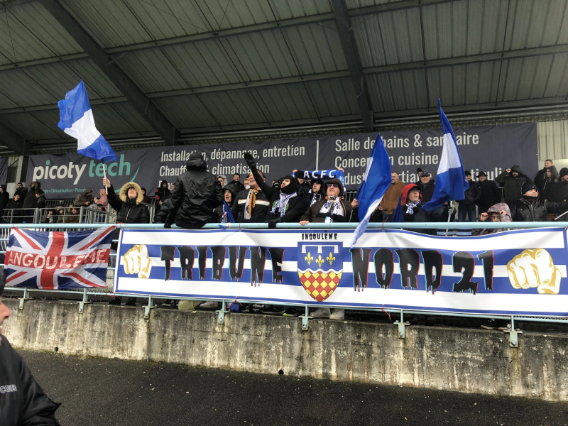 Cette politique de répression pose question. Dans les sujets de conversation, en avant-match, elle apparaît constamment. Jérôme, responsable du groupe de supporters angoumoisin Tribune Nord 21, représente assez bien l’incompréhension générale : « On reçoit Bordeaux. C’est énorme pour la ville et pour montrer qu’en N2, il y a une ferveur. Que les supporters bordelais aient été interdits est un scandale ! Un match de football, c’est une fête, et il y a énormément d’habitants d’Angoulême qui supportent les deux clubs, donc on ne peut pas comprendre. » Même son de cloche pour Léo*, 18 ans, encarté aux Ultramarines, qui a effectué le déplacement en indépendant : « C’est honteux ! Les supporters font partie du football, et les ultras ont leur place dans un stade. On nous parle d’une rivalité inexistante avec des supporters d’un club de N2. Le plus dur, c’est que nous ne sommes pas les seuls à devoir lutter pour nos libertés. Le mot d’ordre doit être que même interdits, on sera toujours là ! »