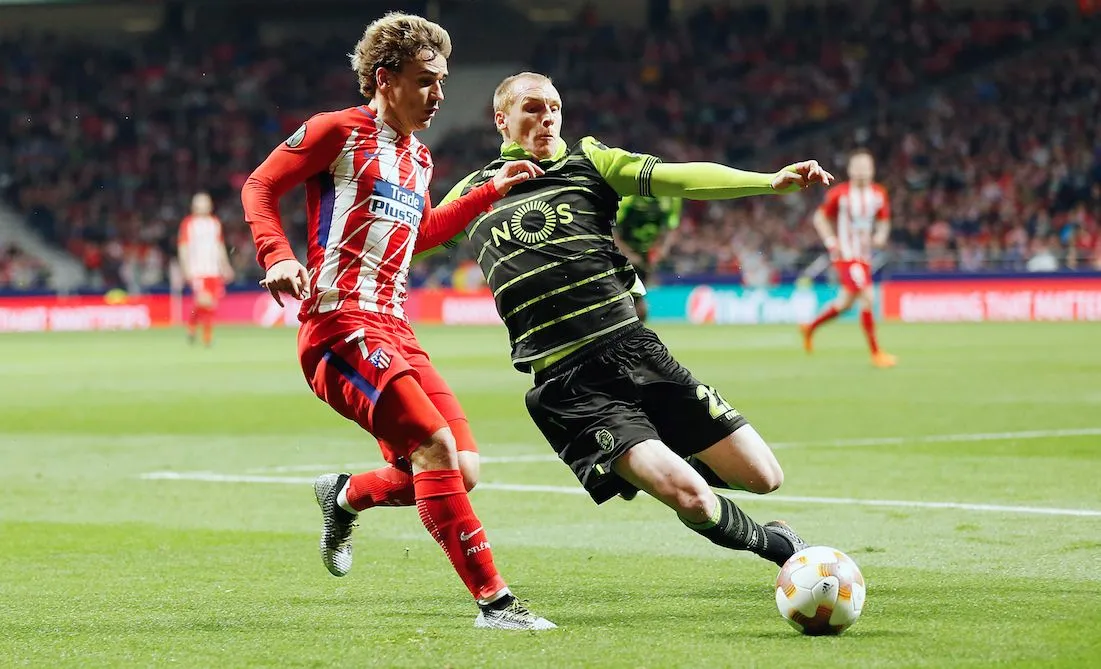 Annoncé comme grandissime favori de la compétition, l’Atlético n’est pas du genre à se faire absorber par la pression. Au contraire du défenseur du Sporting Portugal Sebastien Coates qui, pour son premier ballon, voit sa passe toute molle interceptée par Diego Costa. Intelligemment, l’international espagnol décale sur le côté gauche Koke, qui ne se fait pas prier pour soulever le Wanda Metropolitano (1-0, 1re). Assommés, les Portugais ne baissent pas la tête pour autant et repartent de l’avant, mais la tête de Bas Dost passe de peu à côté (12e), tandis que Gelson Martins voit sa frappe détournée par Jan Oblak (32e). Et alors que le Sporting semble capable de revenir au score, Jérémy Mathieu manque son contrôle et voit Antoine Griezmann lui chiper le ballon avant d’aller se venger de la finale de l’Euro 2016 en trompant Rui Patrício (2-0, 40e).