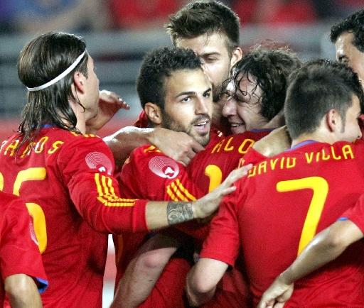 Sur le banc, au début du match il y a Fabregas, Pedro, Navas, Torres. Sur la pelouse, il y a encore mieux. En attendant le retour au top du Niño Torres, Del Bosque a sorti son (presque) 11 majeur. Iniesta en chef d’orchestre, Xavi en métronome et Alonso en tour de contrôle. Ces trois-là, quand ils jouent comme hier soir, sont peut-être ce qu’il y a de mieux au milieu de terrain depuis une bonne vingtaine d’années. Iniesta plie le match en 15 minutes après deux coups de baguette magique (Villa, 12ème ; Silva 15ème). Andrés se fait un peu mal, alors pour bien garder le bijou de famille au frais, Del Bosque le remplace par Pedro à la 32ème. Ce qui frappe chez les Espagnols, c’est une hallucinante fluidité dans les enchaînements et une incroyable capacité à imposer leur rythme. La sélection espagnole, c’est l’impact du Real ajouté à la fluidité du Barça. Résultat : 3 buts en 50 minutes.