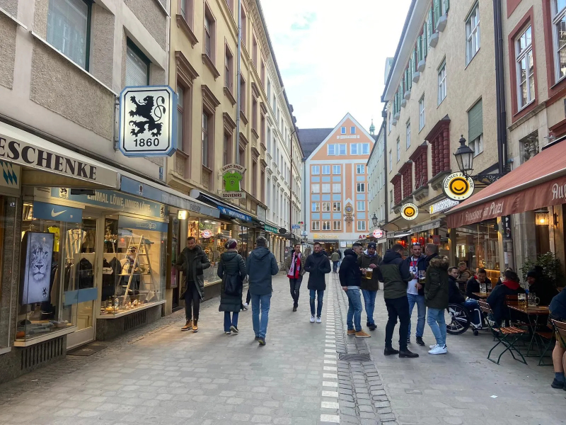 Tous, sauf les plus curieux qui décident de faire un crochet par Orlandostrasse, une zone piétonne située juste derrière la mairie de Munich, pour se rendre devant la boutique de l’autre club de la ville, celle du Munich 1860. Dans un communiqué posté sur les réseaux sociaux plus tôt dans la semaine, les fans du TSV ont assuré qu’ils viendraient en nombre à l’Allianz Arena pour soutenir le PSG. Une promesse tenue ? Difficile de le vérifier. D’abord parce que les supporters parisiens n’ont croisé personne devant cette boutique. Ensuite parce que les deux vendeuses du shop d’une dizaine de mètres carrés n’étaient pas plus au courant qu’eux. Enfin parce qu’aucun drapeau du club pensionnaire de la troisième division allemande n’a été aperçu dans la ville, aux abords du stade, et dans le virage parisien tout au long de la rencontre. « Moi, je suis sûr qu’ils viendront, alors j’ai acheté une petite écharpe pour les remercier », admire presque un Parisien.