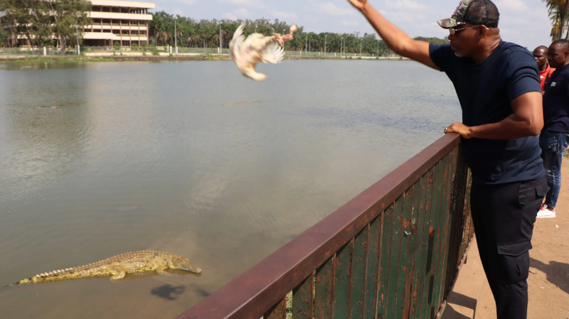 Bonaventure Kalou est un homme très pris. En plus de son poste de maire de Vavoua, l’ancien Élephant (51 sélections entre 1997 et 2007) préside également la Commission des arbitres de la fédération ivoirienne de football (FIF). Résidant à Abidjan, il se rend deux fois par mois dans sa commune pour veiller à la bonne avancée des travaux qu’il y mène. Nous le retrouvons à mi-chemin de son trajet, à Yamoussoukro, capitale administrative de la Côte d’Ivoire, « bien plus calme et où les Abidjanais se rendent le week-end pour se détendre ». Derrière les lunettes teintées, obligatoires par cette chaude journée ensoleillée de décembre, M. le Maire sort posément de son 4×4 et envoie son chauffeur acheter des poulets au marché voisin. En attendant de les jeter (vivants) aux caïmans qui vivent dans l’étang du palais présidentiel – une tradition dont raffolent les visiteurs de passage –, il serre les paluches qu’on lui tend et claque quelques selfies avec les curieux qui le reconnaissent. Et ils sont encore nombreux, preuve que la cote de popularité du « Maire Choco » est toujours au beau fixe. Une fois les crocos rassasiés, on le suit à l’ombre de la terrasse d’un petit maquis excentré, plus agréable pour discuter au calme et poser LA question rituelle : « Quelles sont les nouvelles ? »