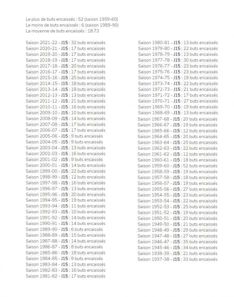 Les statistiques de l'historique des buts encaissés sont fournies par l'excellent site Scapulaire.com