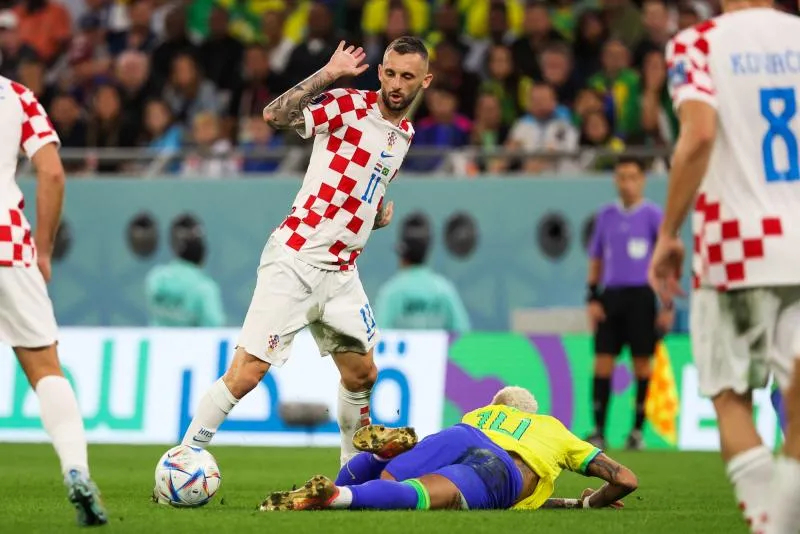 Si Luka Modrić est un Benjamin Button en puissance, c’est aussi parce que le triangle des Bermudes qu’il constitue avec Mateo Kovačić et Marcelo Brozović au milieu est une formidable fontaine de jouvence. Une ligne resserrée, qui dissèque l’influence des stars adverses et fait disparaître le cuir pendant de longues minutes. Il s’agit même du « meilleur milieu de terrain au monde » à en croire Zlatko Dalić, le sélectionneur des Vatreni. Il est en tout cas très certainement le plus équilibré. Comme en 2018, la Croatie fait durer le plaisir et achève ses adversaires aux tirs au but. Comme en 2018, la Croatie a la possession, et dicte le tempo. Sa pointe basse, Brozović, en est le joueur de synthèse, et mérite au moins autant d’éloges que le Ballon d’or 2018. D’autant plus que ce dernier est arrivé pratiquement sans rythme au Qatar, la faute à des ischios grinçants et à un mois et demi de compétition manqué avec l’Inter.