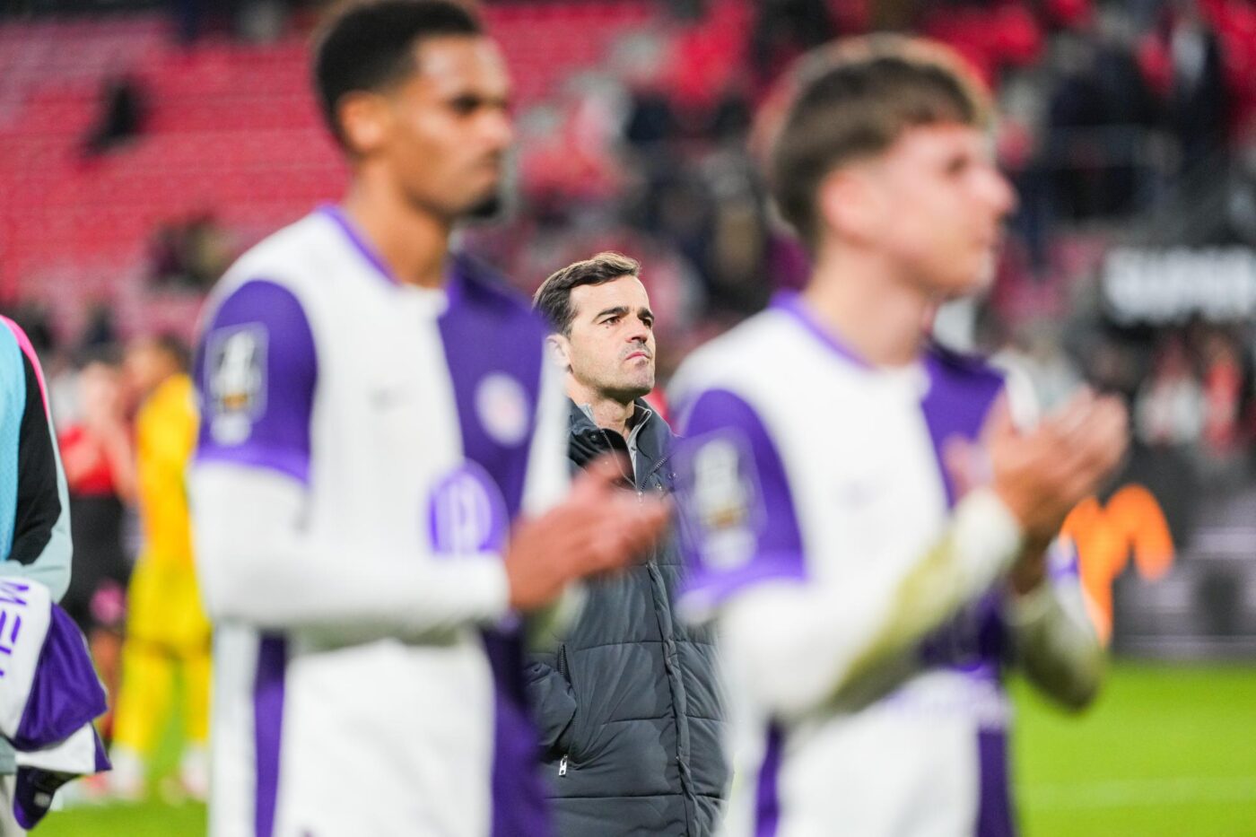 Depuis sa prise de poste, le quadra aux sourcils épais a su mettre sa patte pour retaper l’effectif à sa sauce et redonner un petit coup de pinceau à un violet qui avait un peu blanchi. Le tout, sans faire d’éclaboussures. Lorsque le natif de Barcelone débarque sur les rives de la Garonne en décembre 2022, on lui attribue le poste de « responsable de la méthodologie » pour épauler Philippe Montanier, un poste qui lui sied parfaitement. Le Téfécé est alors promu en Ligue 1 et champion en titre de Ligue 2 après avoir passé deux petites saisons dans l’antichambre. Le type, inconnu en France, a pour idée d’apporter la précision qu’il a apprise à la Masia, fréquentée de 2015 à 2019. « J’ai eu l’occasion d’entraîner de très bons joueurs à l’image de Gavi, Ansu Fati ou Eric Garcia par exemple, avait-il déclaré à son arrivée. Au FC Barcelone, l’idée est d’expliquer le comportement d’une équipe lors d’un match, en prenant en compte absolument tous les paramètres. » Une aubaine pour les Toulousains, puisque, lorsqu’il prend les commandes de l’équipe première après une treizième place en Ligue 1 et une Coupe de France en juin 2023, le bonhomme insuffle naturellement un style de jeu qui colle parfaitement à la Ville rose : et ça, tout le monde kiffe.