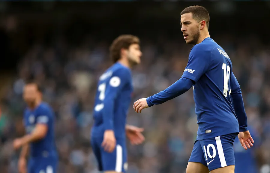 Une image et une seule, pour résumer l’affaire : celle d’un joueur qui sort de scène, le visage secoué par l’expérience vécue, sans un regard pour ce qui intéresse alors les supporters d’un Chelsea battu sans se battre à l’Etihad Stadium, dimanche (0-1). On joue alors la 90e minute, Manchester City se contente de gérer un avantage logiquement acquis après la pause à la suite d’un enchaînement cagade de Christensen + inspiration de David Silva + finition hargneuse de Bernardo Silva. Antonio Conte est sous les eaux. Il est trop tard, l’Italien le sait, mais voilà qu’il décide de sortir Eden Hazard plombé, par les choix tactiques d’un coach incapable de répondre à Pep Guardiola, qu’il avait pourtant brillamment maîtrisé la saison dernière, lors de la dernière défaite en date de City à domicile (1-3, le 3 décembre 2016). Le Belge sort de la leçon en cours, ne regarde pas Conte, se cache sous sa capuche. Sur le moment, la scène est surréaliste, mais brutalement humaine : le fait que le meilleur joueur des Blues se retourne, à son tour, contre les décisions d’un coach que l’on sait depuis plusieurs semaines sur une corde prête à craquer, dit beaucoup de ce que Chelsea, champion d’Angleterre en titre venu à Manchester dimanche pour une passation de pouvoir amère, est devenu en l’espace de quelques mois à peine. Plus tôt, Antonio Conte avait fait lever Álvaro Morata avant de lui faire renfiler sa veste sans que quelqu’un n’y comprenne grand-chose. Comme si, plus que jamais, le natif de Lecce ne savait plus quoi faire.
