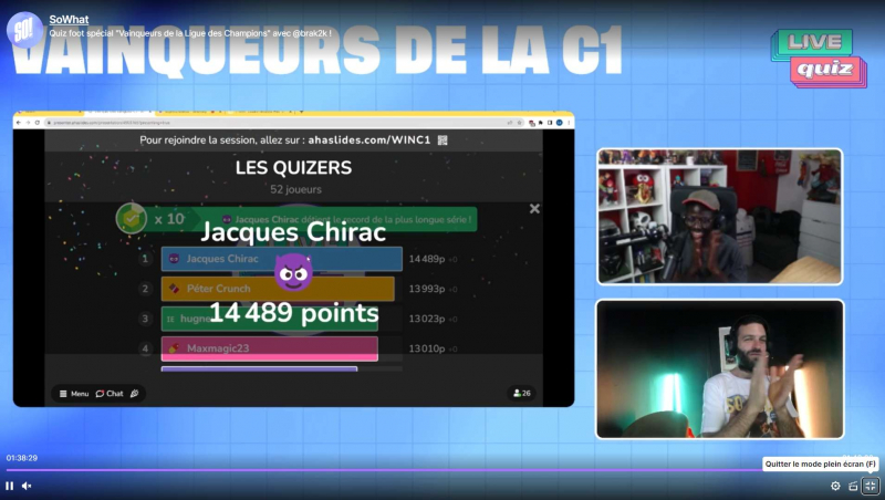 Un jeudi sur deux à 19h, sur notre chaîne Twitch, So Foot te propose de gagner des cadeaux grâce à ta culture foot. Ce jeudi soir, le thème est "Vainqueur de la Ligue des champions". L'invité à battre ? Le streameur Brak.