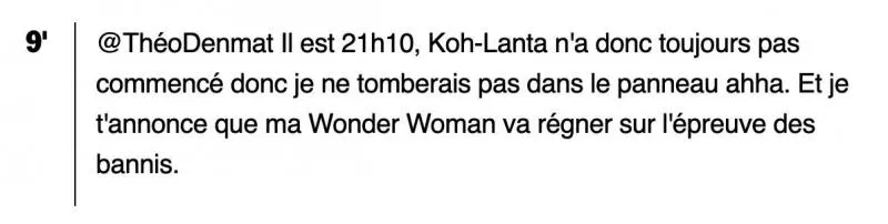 23h26 : Téhé ne gagnera jamais Koh-Lanta, c’est pas possible.