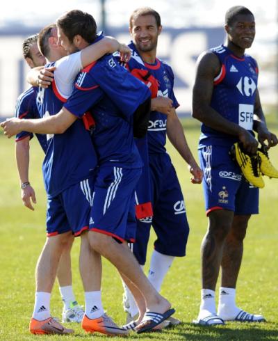 Le choix de Gignac à droite n’est sans doute pas anodin… Déjà, l’attaquant toulousain grille la politesse aux deux habitués au poste : Anelka et Govou, excusez du peu. En plus, Ray sait parfaitement qu’André-Pierre n’est pas à l’aise en pur ailier droit… Peu importe ! C’est peut-être un message fort envoyé à tout le groupe, et notamment à ceux qui ont beaucoup revendiqué, les Ribéry, Henry, Malouda, justement (Anelka aussi, qui ne va certainement pas se contenter d’un strapontin, lui qui n’a jamais joué de coupe du monde)… L’option surprise de Gignac a-t-elle pour but de faire réfléchir Anelka et Govou ? Qu’il vaut mieux un joueur à l’excellente mentalité et qui bosse pour le groupe plutôt que d’autres joueur “moins motivés” ? Autre indice intéressant. Le milieu Gourcuff-Toulalan-Malouda a travaillé une opposition contre le trio offensif Gignac-Henry-Ribéry. Ensuite le même milieu a affronté le trio Valbuena-Anelka-Cissé. Simple exercice de routine ou plutôt un plan B dévoilé pour bien faire comprendre aux trois “titulaires” en attaque qu’ils ne sont pas à l’abri d’une éviction en cas d’insuffisance manifeste ?