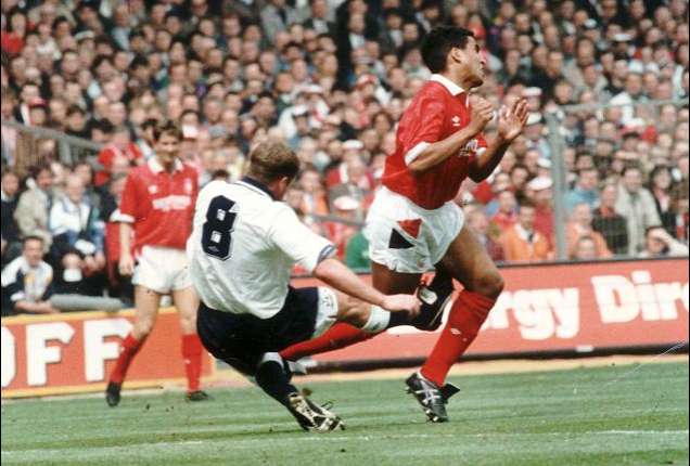 Si la victoire de la RFA au Mondial italien est l’événement de l’été 1990, les larmes de Paul Gascoigne en demi-finale à Turin restent comme l’une des images marquantes de la compétition suprême. Moins d’un an plus tard, Tottenham et Nottingham Forest se retrouvent dans un Wembley plein à craquer, où 80 000 personnes ont pris place pour assister à l’événement de l’année dans l’antre le plus célèbre du royaume. Ainsi, au-delà du prestige que revêt la plus vieille compétition de football du monde, la finale qui oppose ce jour-là les équipes de Terry Venables et Brian Clough doit marquer la sortie en apothéose de l’enfant chéri, Paul Gascoigne, avant son très médiatisé transfert vers la Lazio, qui a trouvé un accord de 8,5 millions de livres avec le club londonien. En effet, après avoir séché ses larmes italiennes, Gazza enchaîne avec une saison exceptionnelle sous le maillot des Spurs, marquée par de nombreux coups d’éclat, comme ce coup franc surpuissant inscrit contre Arsenal en demi-finale de la compétition. Si en championnat, la saison des deux clubs est relativement morose, avec une huitième place pour les hommes de Clough, et des Spurs terminant dixièmes au classement final, les deux équipes impressionnent tous les observateurs en Cup.