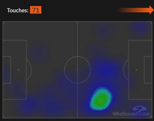 → Les Heatmaps d’Antoine Griezmann lors des matchs contre l’Autriche, les Pays-Bas et la Belgique, témoignant d’une influence moins grande sur le jeu des Bleus, malgré une activité plus importante sur le côté droit face aux Diables rouges en huitièmes de finale.