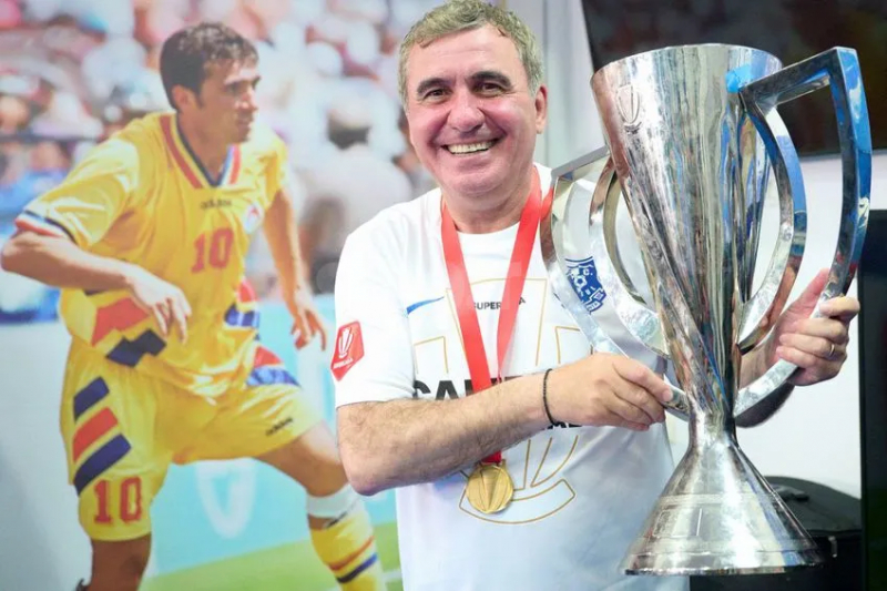 En Roumanie, il est coutume de dire qu’il faille « parfois devenir frère avec le diable pour franchir le lac ». Mais lorsqu’un phare nous guide pour de vrai, et pas de manière imagée, sa seule lumière jaillissante suffit pour se frayer un chemin dans l’obscurité. Ici, l’obscurité demeure l’état global du football roumain, dont la timidité sur la scène européenne est proverbiale. Quand on s’appelle Gheorghe Hagi, croire jusqu’au bout en ses préceptes et ses valeurs pour gravir les montagnes est un pléonasme. Dimanche dernier, le Farul Constanța, entraîné et administré par le Maradona des Carpates, a décroché son premier titre de champion de Roumanie sous cette appellation, deux étés seulement après sa fusion avec le Viitorul, vitrine de l’Academia Hagi durant plus de dix ans. Au nez et à la barbe du FCSB de Gigi Becali, éternel second depuis 2015, et du quintuple champion en titre, un CFR Cluj en fin de cycle. Pour être expéditif : Hagi a déjà fait la nique aux cadors avec son Viitorul en 2017. Un champion surprenant, qui pouvait difficilement confirmer en Coupe d’Europe. Mais une chose est de réussir à le faire avec son laboratoire – le vrai rôle du Viitorul –, en attendant de pouvoir récupérer la marque de son club formateur, pour saupoudrer ses performances sportives de ferveur populaire. Le faire avec une entité qui n’a rien gagné durant 103 ans (hormis des breloques en D2), avec deux joueurs de 17 ans titulaires au minimum, tout en imposant son style de jeu de manière autoritaire, c’est surtout la victoire d’un idéal opposé à la léthargie et à la frilosité ambiantes.