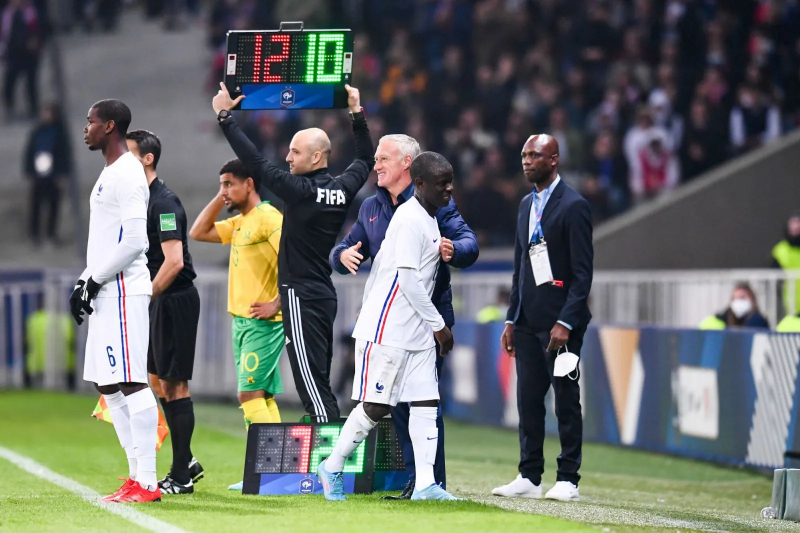 Les tambours et les trompettes. Vendredi prochain au Stade de France, l’équipe de France retrouvera son public 95 jours après un petit coucou dans le froid parisien et depuis le balcon de l’hôtel Crillon, juste après être descendue du grand huit qatari. Cette Coupe du monde, au final épique et nerveux, a vu émerger de nouvelles icônes, a permis à certaines promesses de sortir de leur chrysalide et offert à des historiques un dernier tour de roue. Depuis, ils sont cinq à avoir mis fin à leur aventure internationale : le capitaine de navire Hugo Lloris, l’immuable doublure Steve Mandanda, le téméraire Raphaël Varane venu à bout de sa force tranquille, l’indispensable et pourtant dispensé Blaise Matuidi, et l’énigmatique Karim Benzema – avec tout le drama que l’on connaît et qui continue de défrayer la chronique. Voilà 454 capes qui s’envolent à jamais aux archives nationales. Dans son dernier entretien au Figaro, Didier Deschamps laissait entendre qu’un hommage sera rendu à ces soldats, en marge de la rencontre contre les Pays-Bas. « J’espère qu’ils viendront », soufflait le boss des Bleus. Une chose est sûre : N’Golo Kanté et Paul Pogba, eux, ne prendront pas part à cette petite sauterie. Visages emblématiques de cette période faste pour l’équipe de France, ils ne pourront ni être honorés – puisque pas retraités – ni être impliqués dans l’écriture d’un nouveau cycle – car hors service.