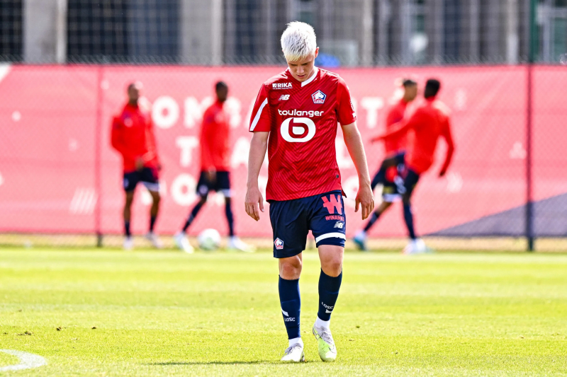 L’information a été officialisée le 17 juillet dans la soirée et il n’a pas fallu attendre longtemps pour voir le natif d’Akranes en action sur un gazon. Peu bavard, mais séduit par le souhait de Paulo Fonseca de voir ses ouailles cavaler « partout, tout le temps », Hákon Haraldsson s’est mis en short deux jours après son débarquement en France lors d’un amical contre Dunkerque (3-1, entrée pour les 30 dernières minutes), samedi dernier lors du passage à la moulinette du Cercle Bruges (7-2, titulaire, triplé) et mercredi face au Havre (3-2, titulaire, doublé). Entre les mailles du projet de jeu d’un Paulo Fonseca qui s’avance vers sa deuxième saison française avec de grosses ambitions et une volonté toujours intacte d’imposer un football porté par une « forte identité », pensée autour de sorties de balle couillues, de combinaisons axiales courtes, d’un haut taux de possession de balle et d’un pressing haut et féroce, le néo numéro 7 des Dogues, suivi depuis plus d’un an et qui a été testé dans différentes zones depuis le début de sa carrière, a vite trouvé son rôle : celui de deuxième numéro 10 dans le 4-2-2-2 nordiste.