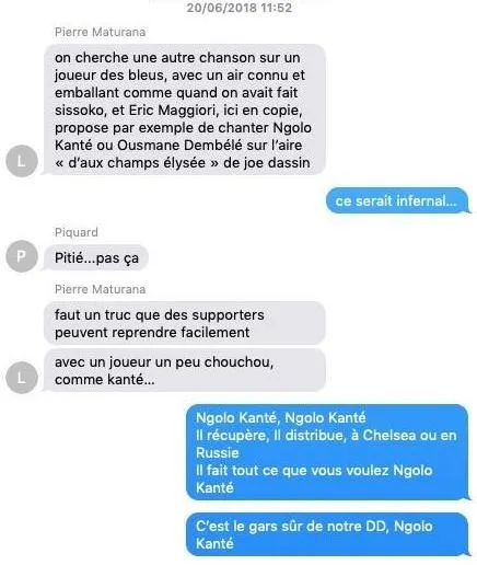 Bref. Voici un échange de textos entre Éric Maggiori, Paul Piquard et Pierre Maturana, directeur de la rédaction de sofoot.com, qui montre comment ce grand n’importe quoi a commencé et pourquoi c’est tombé sur le chouchou des Bleus :