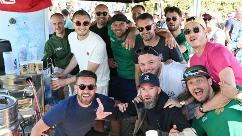 20 mai 2024, Brendan Chardonnet sert des bières derrière la buvette du club de D1 de Plougonvelin dans le Finistère. Quelques heures seulement après la qualification historique, la veille au soir, du Stade brestois en C1. Un amour non feint pour le football, le vrai, à l’origine de notre demande de le voir parrain du Vrai Foot Day.