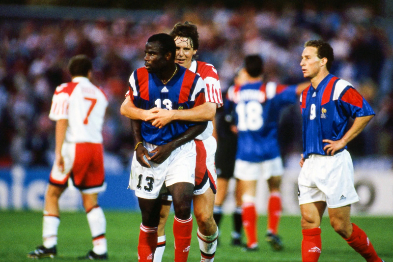 Après avoir manqué l’édition précédente, l’équipe de France se présente à l’Euro 1992 avec le souvenir du sacre de 1984 et fait partie des favoris, avec le duo Éric Cantona-Jean-Pierre Papin en attaque et Michel Platini comme sélectionneur. Jocelyn Angloma, défenseur latéral qui dispute alors sa première compétition internationale, se souvient d’un tournoi frustrant, raté et d’un groupe qui n’était pas conditionné pour gagner.