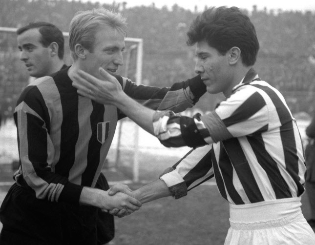 Pour l’Inter, d’un point de vue strictement sportif, le rival numéro un est bien la Juve. « C’est une rivalité plus professionnelle » , analyse Bolchi. Fanna lui fait écho : « Chaque saison, c’est régulièrement l’équipe à battre. Quand on affronte lesBianconeri, on regarde le classement, on cherche à se renforcer psychologiquement. » Cette opposition a connu un tournant dans son histoire en 1961 : « Le fameux match interrompu à cause d’une invasion pacifiste des supportersjuventini. J’avais 21 ans et c’était la première fois que je portais le brassard de capitaine. Au lieu de leur donner match perdu sur tapis vert, la Fédération, dirigée par Umberto Agnelli, a fait rejouer la rencontre. L’Inter a eu l’impression que la Juve utilisait son pouvoir pour obtenir ce qu’elle voulait » , raconte Bolchi. En guise de protestation, Angelo Moratti envoya les U19. Résultat : défaite 9-1 pour un match qui n’avait cependant plus aucun enjeu à la date où il a été rejoué.