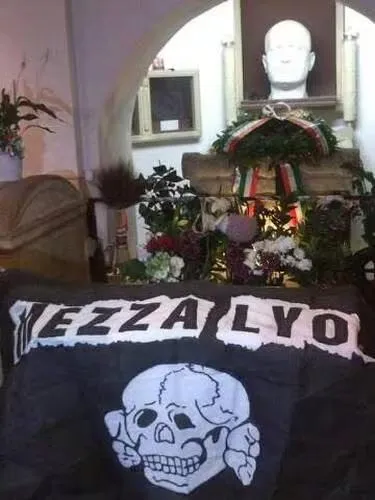 Enfin, ce n’est pas vraiment le même blason. Les plus férus d’histoire de la Seconde Guerre mondiale auront remarqué que le griffon utilisé par cette division d’infanterie de la Waffen-SS est ici remplacé par un lion, évidemment. Ce qui fait qu’il n’est techniquement pas illégal de le montrer en France. Justement, c’est tout le problème de l’OL, qui cherche à se débarrasser de ce groupe. Il est difficile de dissoudre un groupe qui n’existe pas, et la Mezza joue souvent avec les limites. Elle se garde bien, par exemple, de ramener son « vrai » drapeau au stade, qui comporte une Totenkopf, un autre symbole SS, lui totalement illégal, surplombé par l’inscription « Mezza Lyon ». Un étendard qui a même été déployé au sein du mausolée de Benito Mussolini, lors d’une virée du groupe en Italie. Quant aux dérapages racistes que l’on a vus à Marseille, il est encore impossible de savoir si les auteurs des saluts nazis et des cris de singe sont bien des membres de la Mezza. Selon nos informations, l’OL a demandé, le lendemain de la soirée à Marseille, à récupérer les images de vidéosurveillance du parcage, mais ne les a reçues qu’en fin de semaine dernière.