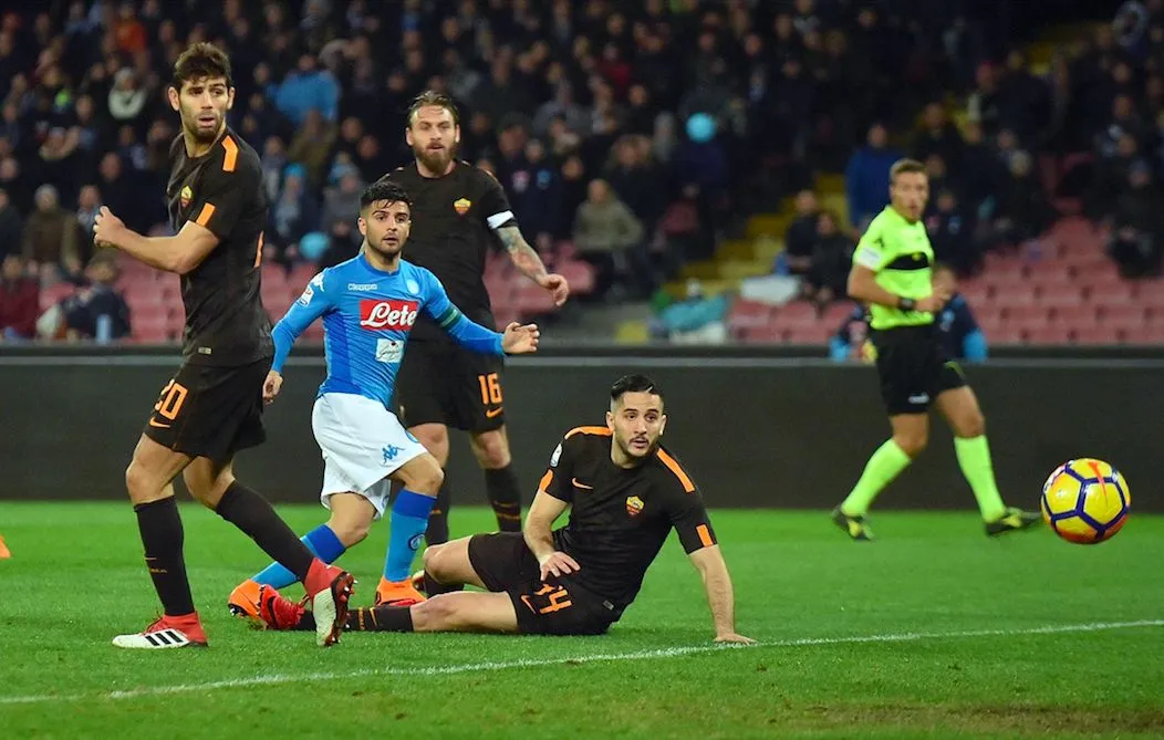 Buts : Insigne (6e), Mertens (92e) pour le Napoli // Ünder (7e), Džeko (27e, 73e), Perotti (78e) pour la Roma