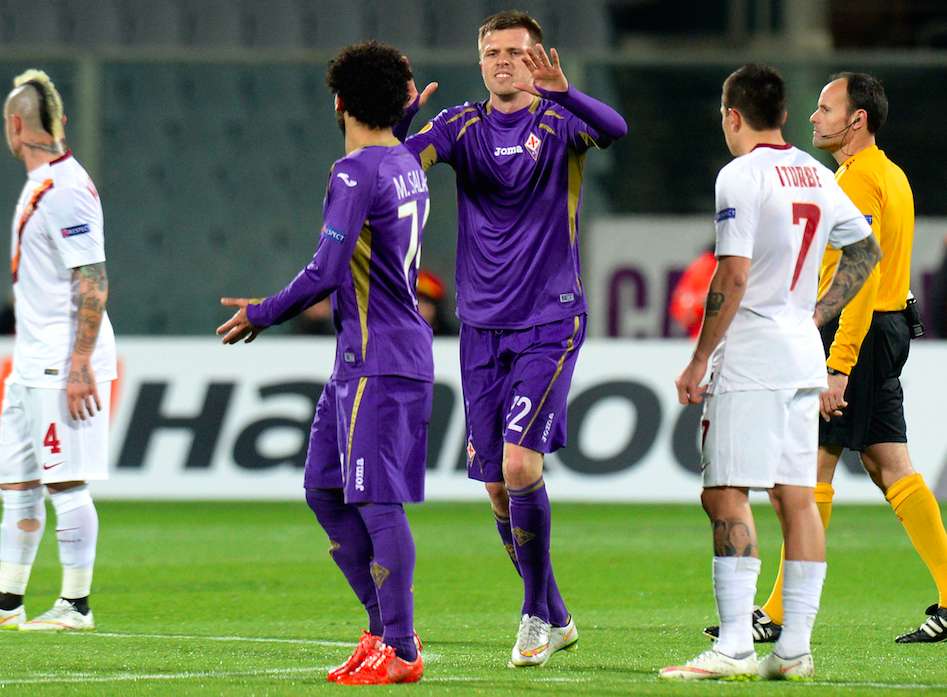 On joue la 17e minute de ce huitième de finale aller de la Ligue Europa à Florence, et le stade Artemio-Franchi croit avoir vu un fantôme. Non, il ne s’agit ni des chaussettes baissées de Rui Costa, ni de la mitraillette de Gabriel Batistuta, dont le bruit ineffaçable résonne pourtant dans toutes les têtes. L’apparition est encore plus improbable : c’est le pied droit de Josip Iličić. Salah profite d’une perte de balle de De Rossi au milieu, remonte le terrain et sert le Slovène. Devant la stupeur générale, le gaucher arme alors son pied droit, que l’on croyait muet, et lance un missile dans la lucarne de Skorupski. Une heure plus tard, à l’heure de jeu, le stade tout entier insulte un autre fantôme : l’arbitre de surface, incapable de voir que Neto dévie bien le ballon avant de toucher Iturbe, qui obtient un penalty. Si Neto parvient à l’arrêter, il ne pourra rien faire en fin de match contre le coup de tête à bout portant de Seydou Keita, une nouvelle fois décisif. Montella pensait gagner sans encaisser de but : il se retrouve finalement avec l’obligation de marquer à Rome.
