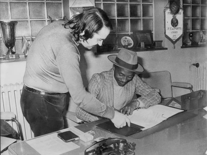 Laurent Pokou n’était pas n’importe qui, les mois, les semaines et même les jours précédant son arrivée en Europe viennent le rappeler. À ce moment-là, l’homme d’Asmara est déjà une légende du football africain et un dieu vivant en Côte d’Ivoire, où il a collectionné les buts et les titres nationaux avec l’ASEC Abidjan. Il est aussi le meilleur artilleur de l’histoire de la CAN (14 réalisations en deux éditions, en 1968 et 1970), un record qui tiendra pendant près de 40 ans jusqu’à ce qu’il ne soit battu par Samuel Eto’o, en 2008. Après la mini Coupe du monde de 1972 (aussi appelée Coupe de l’Indépendance) se déroulant au Brésil, il est adoubé par le roi Pelé lui-même : « J’ai trouvé mon successeur. Il s’appelle Laurent Pokou. Il n’a qu’un défaut, il n’est pas Brésilien. » Un an plus tard, le triple champion du monde joue un rôle déterminant dans la décision de l’Ivoirien de quitter le continent africain, Pokou ayant été marqué par les histoires récentes de Salif Keita et de Jean-Pierre Tokoto(1) en France. Le 25 novembre 1973, Georges Taï Benson, vedette de la télé ivoirienne et conseiller de Pokou, revient du pays de la samba avec un maillot de Santos dédicacé par Pelé, et surtout avec une lettre écrite par le Roi, dévoilée dans le canard Ivoire Dimanche, dans laquelle il lui demande de « vivre pleinement » sa carrière et de « tirer le maximum profit de ses dons et de son travail ».