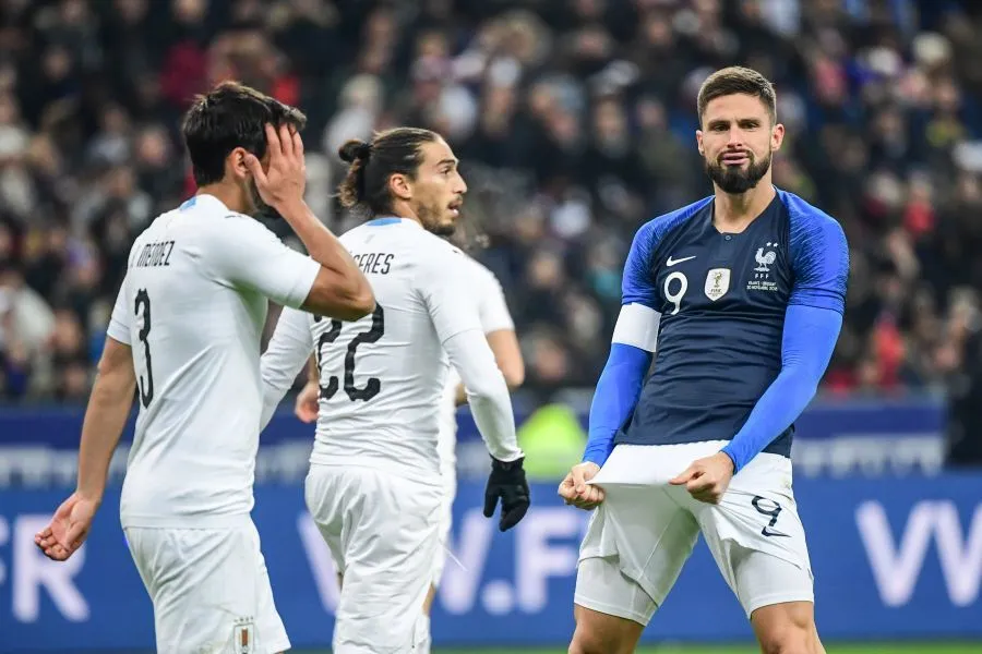 Si par malheur et avec un peu de recul, 2018 ne devait être qu’une parenthèse enchantée, la ponctuation serait assurée par Olivier Giroud, puisque celui-ci a signé le premier et le dernier but de cette année fastueuse. Une parenthèse ouvrante : un but de raccroc en amical face à la Colombie le 23 mars au Stade de France. L’attaquant de Chelsea reprenait alors un centre de Lucas Digne mal négocié par David Ospina pour concrétiser dans ce qui peut être rétrospectivement considéré comme une des meilleures demi-heures de ce groupe, avant de plonger et se faire renverser par les potes de Radamel Falcao et James Rodríguez (2-3). Et ce mardi, une parenthèse fermante : un penalty transformé, face à une autre nation sud-américaine, l’Uruguay, toujours en amical et toujours au Stade de France.