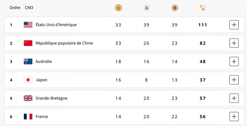 22h13 : Certains d’entre vous l’ont déjà remarqué, la France quitte malheureusement le top 5 au classement des médailles, dépassées par le Japon et la Grande-Bretagne… Est-ce qu’on a le seum ? Oui.