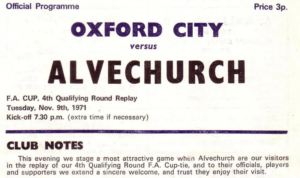 Tout commence le 6 novembre 1971. Au vu du nombre de clubs engagés en Cup, des barrages sont nécessaires pour déterminer les 30 qualifiés qui rejoindront les membres de la Football League lors du First Round Proper, le premier « vrai » tour de la compétition. Et comme le veut la tradition, un rematch est prévu en cas de score nul entre deux équipes. Jusqu’ici tout va bien et personne ne s’émeut particulièrement de ce 2-2 accouché par Alvechurch et Oxford City. Enfin si, un peu quand même, puisque les premiers, pensionnaires de dixième division, évoluent trois échelons en dessous de leurs adversaires, ces derniers ayant créé l’exploit d’atteindre le Second Round Proper deux ans auparavant. Mais bon, la magie de la Coupe s’occupe de rebattre les cartes comme chaque année, et trois jours plus tard, le 9 novembre donc, rendez-vous est pris pour le rematch, organisé sur la pelouse d’Oxford, à une centaine de kilomètres au Sud.