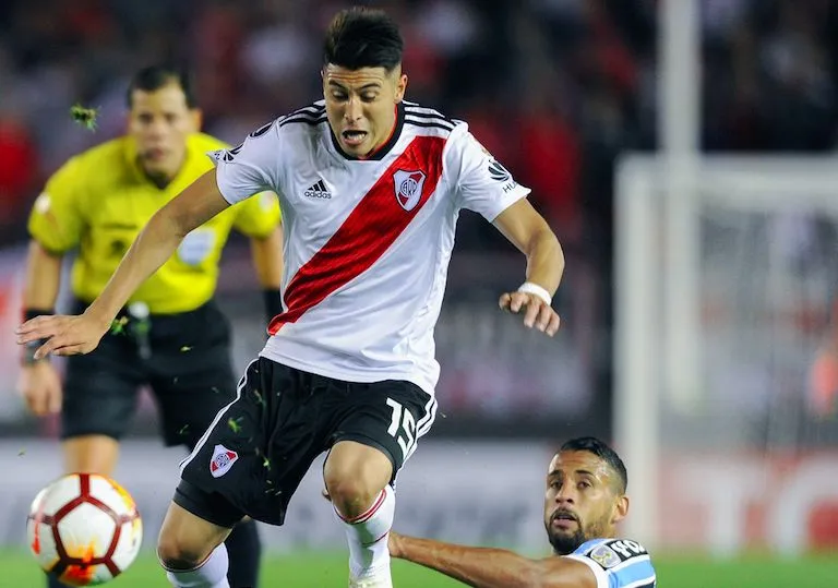 Peut-être les heures passées à admirer Lucho González, Toni Kroos, ou encore Iniesta. Jorge Gordillo, entraîneur chez les jeunes de River, va dans le sens du Muñeco : « Il est arrivé gamin ici et comme avec de nombreux joueurs, on essaie d’implanter l’ADN du club dans leur façon d’être, de s’entraîner. Rapidement, on a vu qu’il se baladait au milieu de terrain. Il jouait au poste de numéro 8 ou parfois enenganche, avec une maturité incroyable. » Sa jeune carrière à River – marquée par des performances exceptionnelles contre le Racing et Boca – devrait vite prendre fin : une offre d’environ 20 millions d’euros, que les dirigeants millonarios ne peuvent pas se permettre de refuser, est arrivée dans les bureaux de Nuñez.