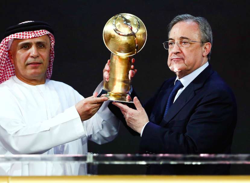 A contrario de Manchester City, du PSG ou encore de Málaga, le Real Madrid est invendable. De par ses statuts associatifs, aucun organisme, aucune entité ne peut se l’offrir. Florentino Pérez, président omnipotent, ne le sait que trop bien. En bon connaisseur des arcanes de la finance et du monde économique – via son entreprise de BTP ACS, il est l’une des plus grandes fortunes d’Espagne –, il flaire le bon coup en associant l’image et le nom du Real avec les pays du Golfe persique. De retour à la présidence en 2009, il engage illico des pourparlers avec Fly Emirates qui, en 2013, devient le sponsor maillot du club. Le contrat, sur cinq saisons, permet au club de s’enrichir de 115 millions d’euros. Pas mal, mais pas assez pour la folie des grandeurs blanche. Fort de son statut de club le plus bankable du monde, il prévoit de se munir de son propre parc d’attractions ! Un projet complètement fou baptisé le « Real Madrid Resort Island » qui devait voir le jour aux Émirats arabes unis et rapporter 25 millions d’euros par an au club. Le fonds d’investissement RAK Marjan Island Football disparaissant, l’initiative est un temps repoussé. Partie remise…