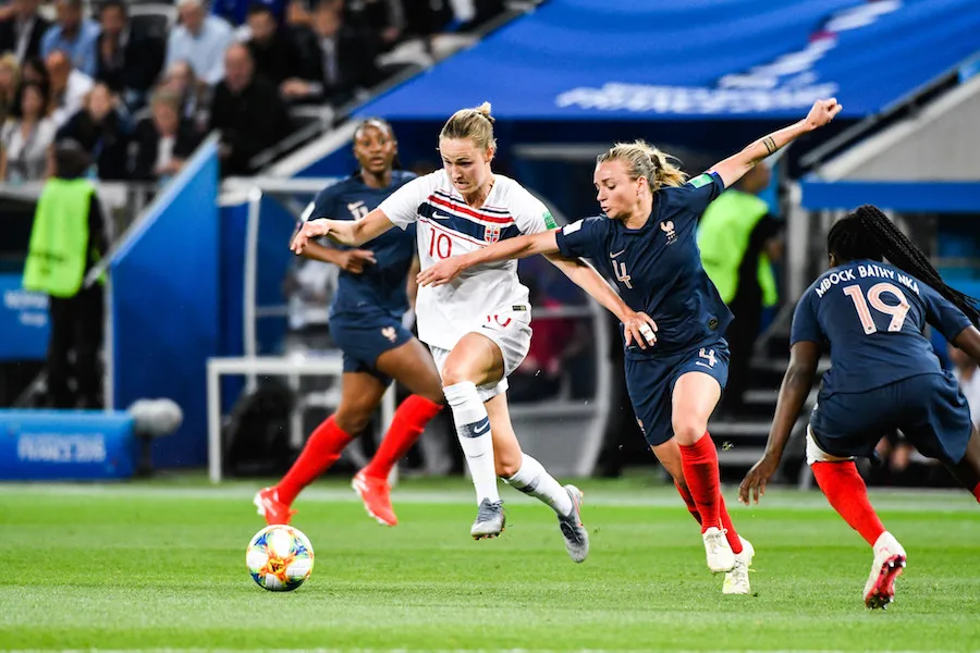 Car, alors qu’elles affirmaient depuis cinq jours à tout le monde que l’important était de retomber sur Terre après un début de Mondial au plus-que-parfait, les Bleues se sont pointées mercredi soir sous les lumières de l’Allianz Riviera avec les mollets qui claquent. Si Corinne Diacre décide avant la rencontre de se la jouer Huck Cheever dans Lucky You en titularisant Valérie Gauvin, punie pour ses retards au premier soir de la fête, la sélectionneuse nationale voit surtout ses femmes se faire secouer lors des vingt premières minutes à cause d’erreurs individuelles quasi mortelles. Une remise suicidaire de Mbock pour Bouhaddi d’abord, une perte de balle dingue de Torrent devant Reiten ensuite, puis un dribble raté de Majdri face à Sævik sont alors tout proche de faire glisser la troupe d’entrée. À la vingtième minute, Amel Majri est même obligée de sauver sur la ligne la boutique tricolore. Un déclic : ce sauvetage marque le début du jeu, le retour de l’audace, des combinaisons osées, du pressing haut… L’équipe de France a mis trente minutes à plonger la tête dans son deuxième match de poules et accepte alors de voir Diani, Le Sommer et surtout Gauvin enchaîner les ratés sur la piste. Pour quelles conséquences ?