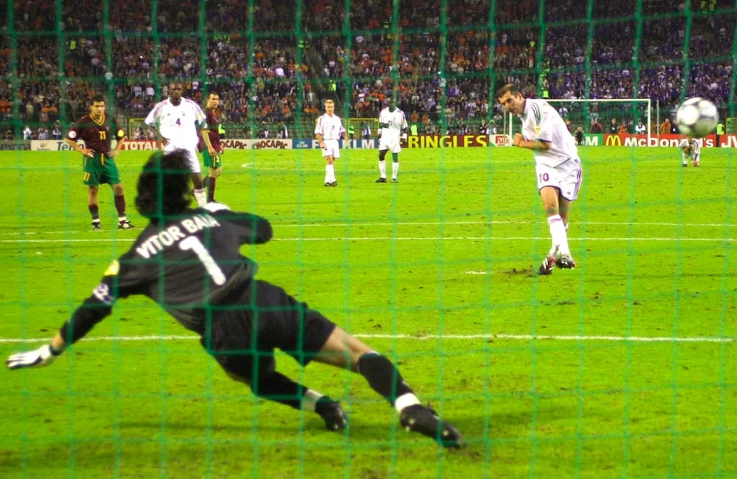 Le foot se joue souvent à rien. Il se joue ici au fait qu’Alessandro Del Piero a oublié la définition du mot réalisme au pire des moments, à une bouteille de champagne trop vite débouchée, à une dernière minute transformée en poignard, à un dégagement de Barthez, à une frappe parfaite de Wiltord et à un type qui aura eu le droit de montrer ses tétons en mondovision à l’Europe toute entière. Pour l’éternité.