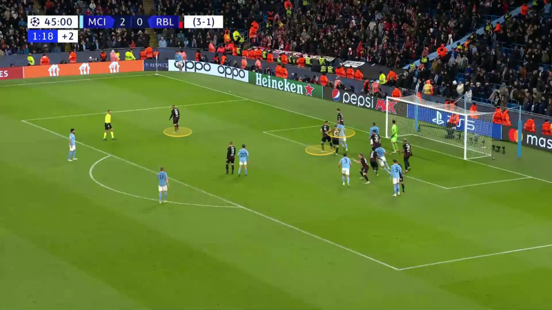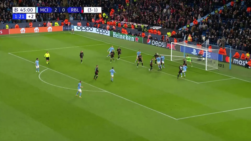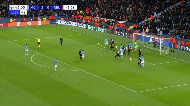 … a vu Haaland faire sortir un défenseur adverse (celui le gérant en individuel), puis Rodri et Akanji en faire sortir deux autres, libérant alors le deuxième poteau…