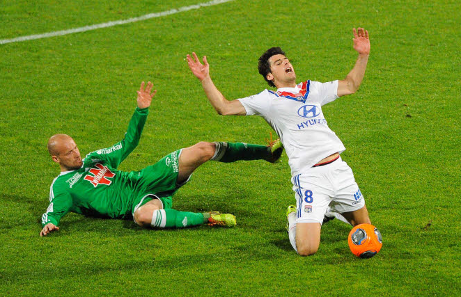 Le peuple vert a dit non. Deux fois. Sur deux revers consécutifs face à Paris (0-2) et Lorient (1-0), avant un léger mieux face à Sochaux la semaine passée (3-1), Christophe Galtier se devait de relancer sa campagne. Quoi de mieux que le suffrage le plus important de l’année pour tenter une opération de com’ un peu folle ? Désireux de s’adapter au 4-4-2 en losange lyonnais, peu importe les membres qui le composent, le patron de l’AS Saint-Étienne expérimente pour la première fois de la saison une défense à cinq, avec Zouma, Bayal Sall et Perrin dans l’axe et le duo Clerc–Trémoulinas sur les côtés. Une audace payante, puisque le camp d’en face semble rapidement perturbé par les nouveaux arguments de l’opposition, notamment dans les couloirs où Trémoulinas passe son temps à abreuver la doublette Erding–Brandão – l’autre surprise de la soirée – en ballons. Intenable à l’extrême gauche du terrain, l’ancien Bordelais envoie à la 25e minute un centre que Gonalons ne parvient pas à intercepter. Seul au second poteau, François Clerc tente un plat du pied sécurité qu’Anthony Lopes détourne magistralement. Très à son avantage ce soir, le portier ne peut rien quelques minutes plus tard, quand l’arrière gauche stéphanois se la joue Besancenot, à multiplier les distributions de colis. Inspiré, « Tresh » balance une merveille de centre à destination de Brandão qui, au second poteau, remise parfaitement vers Erding. Au bon endroit au bon moment à défaut de se la jouer esthète, le Turc devance Lopes et ouvre le score après un petit cafouillage. Aussi excités que des députés un jour de robe de Cécile Duflot dans l’hémicycle, les joueurs, Malbranque, Mvuemba et Cohade en tête, dégainent quelques sales tacles. Touché, Yoann Gourcuff ne verra pas le deuxième tour.