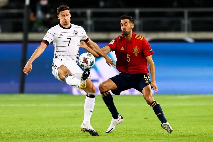 Qu’on se le dise : tout le monde avait envie de voir la marque du Bayern version Flick et de ses fers de lance (Kimmich, Müller, Gnabry, Goretzka…) sur la Nationalmannschaft. Raté : Joachim Löw maintient Müller et Boateng à l’écart, et décide de laisser les autres cadres bavarois au repos. Ajoutez-y un système peu utilisé (le 3-4-3), des joueurs qui se remettent de ligaments croisés rompus (Sané, Süle) et un Draxler titulaire… Décevant, oui, et pas facile, dans ces dispositions, de prendre à la gorge des Espagnols eux aussi très remaniés. Mais le souffle de confiance venu de Bavière a bien fait la traversée jusqu’à Stuttgart : les Allemands prennent le contrôle, grâce notamment à un pressing plus mordant que celui de leur opposant. Pour exister, la Roja ne peut s’en remettre qu’à une défaillance individuelle adverse. Un joli combo, en l’occurrence, avec des cagades de Can et Trapp dont Rodrigo aurait dû profiter pour ouvrir le score (14e). En face, De Gea n’a lui pas le droit à l’erreur, et le portier de Manchester United ne rompt pas devant une tête de Kehrer (11e), une ogive enroulée de Sané (18e) et une escarmouche de Werner (36e). Privée de maîtrise jusqu’à la première demi-heure, l’Espagne a le mérite de tenir bon et en profite pour se rebiffer, sous l’impulsion du divin Alcantára et du virevoltant Ferrán Torres. Un moindre mal : la possession a été regagnée (53%) au moment de siffler à la mi-temps.