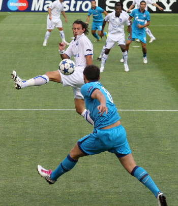 Le Zénith n’a pas de mal à rentrer dans le match : première action offensive, première occasion et premier but dès la 3e minute. Sur un centre de Lazovic, Kerzhakov vient déposer le ballon d’une tête décroisée. Un vrai travail de pro. Les Auxerrois essaient de réagir mais ont du mal à mettre en place leur jeu. Les coups francs de Danny (25e) et Kerzhakov (36e) sont à deux doigts d’entrer dans les cages auxerroises mais Sorlin réalise deux arrêts exceptionnels. Chirokov rate même le but du chaos en frappant au dessus (30e). Petit à petit, les hommes de Jean Fernandez reviennent dans le match. Le dernier quart d’heure est auxerrois. Les frappes de Jelen (32e, 40e ,43e) et de Le Tallec (40e) butent sur le portier russe. Oliech manque de peu l’égalisation quand sa frappe du droit touche la transversale (43e). De quoi soulager Jean Fernandez pour la deuxième mi-temps. Mais au retour des vestiaires, le scénario de la première période manque de se reproduire. La frappe de Chirokov est détournée par Sorin (47e) et celle de Semak (48e) est arrêtée par le dos de Coulibaly. Les deux équipes se montrent plus offensives et les occasions se multiplient. Que ce soit au-dessus (Ndinga à la 52e, Jelen à la 53e) ou dans le cadre (Jelen à la 57e, 88e), rien n’y fait, ça ne rentre pas. Score final : 1-0 pour les Russes.