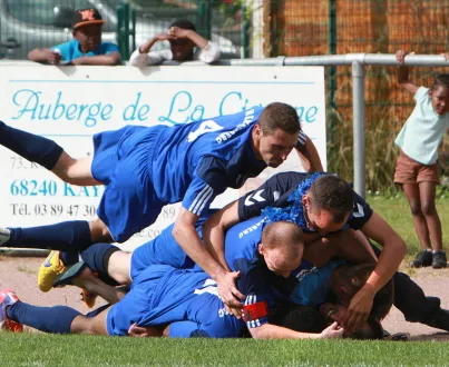 Jonathan Hanquez peine à recoller les morceaux d’un jour où il est passé « par tous les états » . Au fil de l’histoire de la Coupe de France, ces scènes sont devenues un rendez-vous. Une bande de potes qui fait face à un objectif. Des langues tirées, des visages qui n’ont aucun sens et quelques supporters qui en profitent pour jouer des coudes, histoire d’avoir son visage sur la photo souvenir. Autour des silhouettes, huit cents témoins tentent de comprendre ce qu’il vient de se passer. Kaysersberg, ses quelque 2700 habitants et son président Daniel Haxaire n’avaient jamais connu ça. La nouveauté est ainsi : on vit l’instant et on le digère plus tard. Quand tout s’arrête finalement. Vincent Aimetti, la tête pensante qui a relevé un club dernier de son championnat à la même période l’année dernière, le voit comme ça et l’explique ainsi : « Oui, on est conscients de ce qui nous arrive aujourd’hui, mais on réalisera surtout quand on sera éliminés. » Pour l’instant, Aimetti ne veut pas y penser. Kaysersberg veut vivre son rêve. Lequel ? Celui d’un club de PH, le dernier encore en lice cette saison en Coupe de France, qui s’apprête à vivre le premier huitième tour de son histoire contre Feignies (CFA2) samedi. Oui, le 13 novembre dernier, le petit village du Haut-Rhin a retourné Dahlenheim (3-2) lors d’un après-midi frissonnant. Jonathan Hanquez reprend : « Avant la rencontre, on était stressés, puis on a mené 3-0 en début de seconde période. Là, on a eu un excès de confiance. 3-1. Et on en prend un deuxième et à 3-2, on se dit : « Mais qu’est-ce qu’il se passe ? » » L’expérience, rien de plus, et le bordel a pu continuer jusqu’à tôt le lundi matin. Histoire de profiter en poussant jusqu’à la boîte du coin, à Wintzenheim, au Poisson rouge. L’objectif de départ était simplement de pouvoir garder le maillot de la Coupe de France. Chacun en a aujourd’hui quatre.