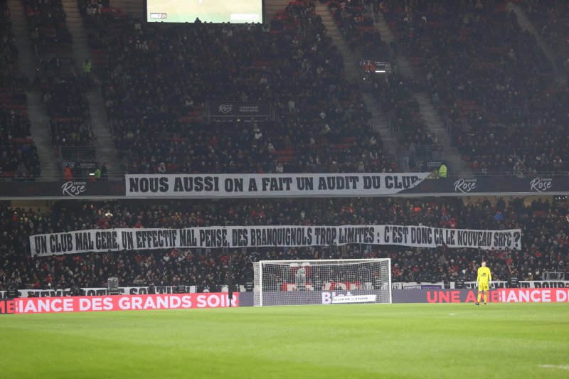 Six messages déroulés, plus ou moins salés : « Un club mal géré, un effectif mal pensé, des branquignols trop limités : c’est donc ça le nouveau SRFC ? », « Tant d’années sabotées en quelques mois, qui doit-on remercier pour cela ? », « On dépense des millions et on n’a toujours pas la moindre émotion », « Passer d’un club européen à une élimination contre l’ogre troyen », « Vous arrivez encore à vous regarder dans un miroir ? Car nous, on ne peut plus vous voir ! », « Maintenant qu’on s’est tout dit, et peu importe votre mépris, on va chanter pour ce club à travers lequel on vit ». Manque de pot : Hugo Magnetti a ouvert le score cinq minutes plus tard, stoppant net les encouragements rennais jusqu’au dernier quart d’heure où le public a parfois tenté de pousser une équipe qui aurait pu passer du 0-2 à 2-2. Seulement, Rennes a perdu, Brest a gagné, et le contraste était encore plus saisissant quand plusieurs supporters cagoulés menaçaient d’envahir la pelouse, provoquant l’intervention des CRS, pendant que les Finistériens célébraient leur succès en parfaite osmose avec leurs supporters.