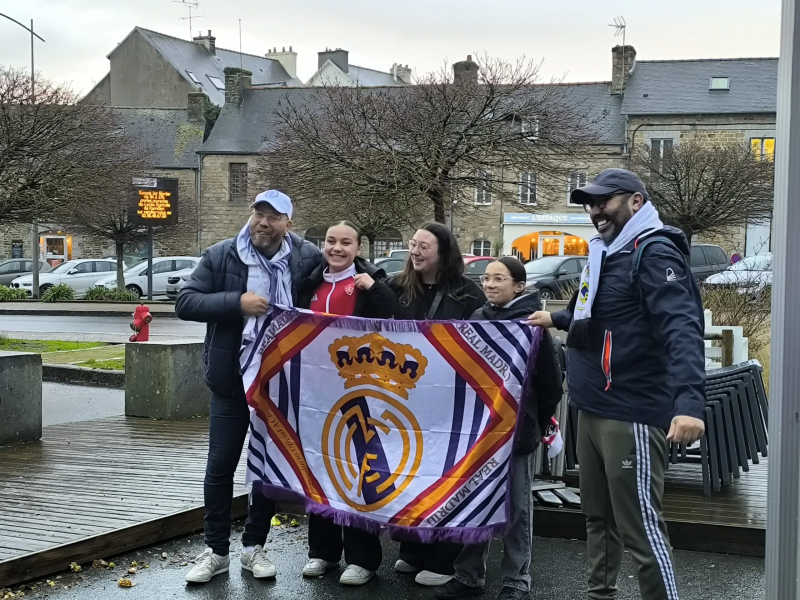 Mis à part un irréductible Brestois, qui passait simplement pour aller aux toilettes, la voiture est remplie d’aficionados du club madrilène, qui exultent comme sur un but de Rodrygo au moment de l’annonce de la gare de Guingamp. Même volume sur le quai en reprenant des chants de supporters, faisant esquisser quelques sourires sur les Guingampais, qui n’avaient pas vu un tel cirque depuis… peut-être le premier match de Neymar avec le PSG, ici contre l’En Avant ? Et surtout quelle compagnie est comparable au Real Madrid ?